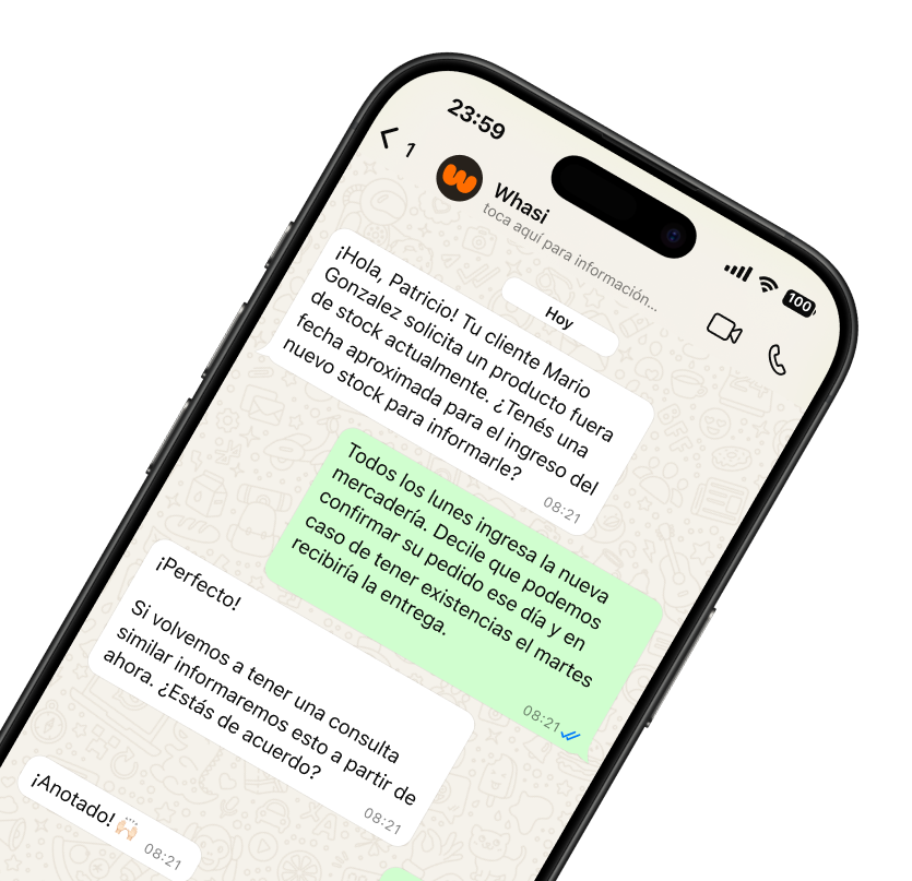 ¿Tenés más volumen? ¿Querés 5 asistentes más? Whasi escala sin límite.