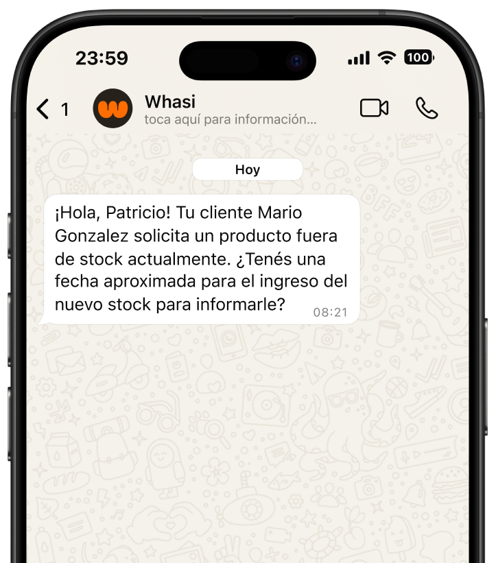 Whasi se integra con cualquier sistema. Consultá por ERPs, CRMs o software propio.